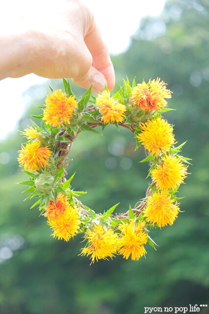 紅花染め体験、ベニバナリップ作り体験、ベニバナリースづくり。