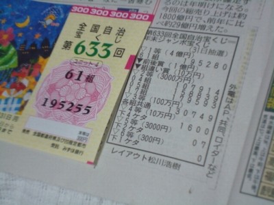 最近、ぜんぜん買うことが無いジャンボ宝くじですが。